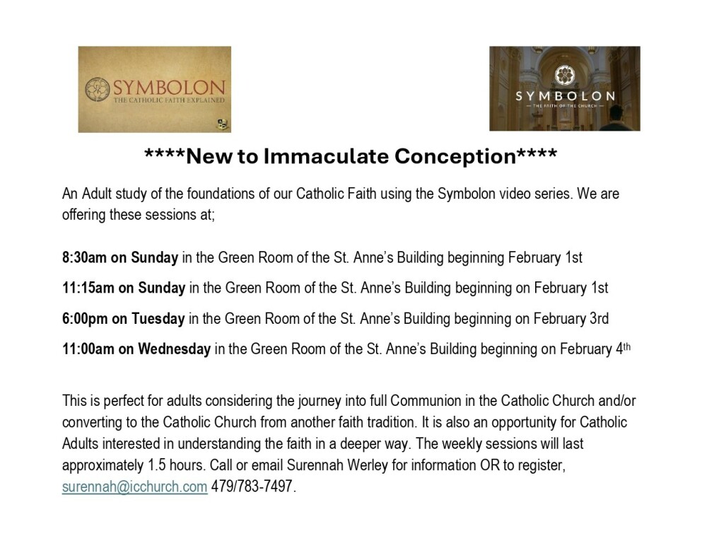 Classes start September 21st.  Please call the church office for more information. Click here for the Confirmation Year II registration form.